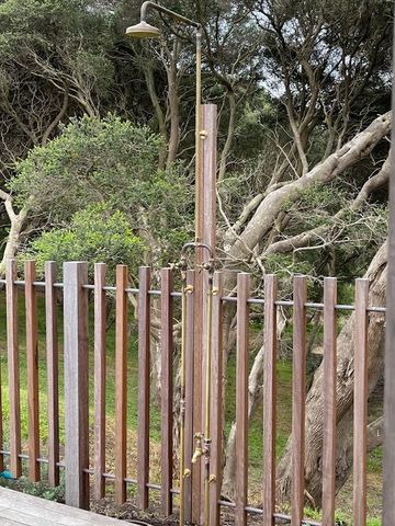 Outdoor Gooseneck Shower Set includes a fixed arm (450mm reach) and fixed 140mm shower rose, as well as two wall tap assemblies with 'X' Handle style. Ideal if plumbing can be concealed behind a wall or screen. Available in raw brass (pictured above), and brushed brass. Please email us for further options, tap styles and finishes.