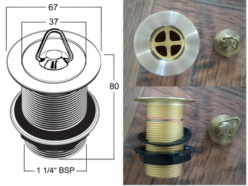 Solid Brass Plug & Waste - 32 x 80 - No Overflow.